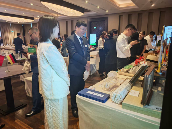 当地时间6月16日,由四川省农业农村厅主办的“天府粮仓”精品品牌推介活动(德国站)在法兰克福成功举办。来自四川的16家农业企业的特色农产品亮相,德国农业贸易、餐饮等相关行业企业代表参加活动。本次活动是“天府粮仓”精品品牌推介活动“出海”办会的又一次精彩呈现。四川省农业农村厅厅长蒋刚,中德农业中心主任于尔根·里特、中国贸促会驻德国代表处首席代表房芳出席活动并致辞。作为绵阳市代表企业,绵阳天虹丝绸有限责任公司携特色茧丝产品及非遗蜀绣产品精彩亮相,让“川字号”精品闪耀莱茵河畔,“绵阳制造”走进法兰克福。四川省农业农村厅厅长蒋刚在活动致辞及推介中,特别介绍了天虹丝绸的品牌成就。